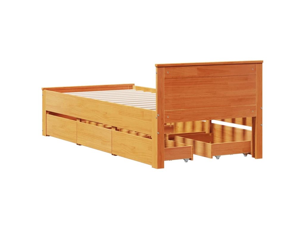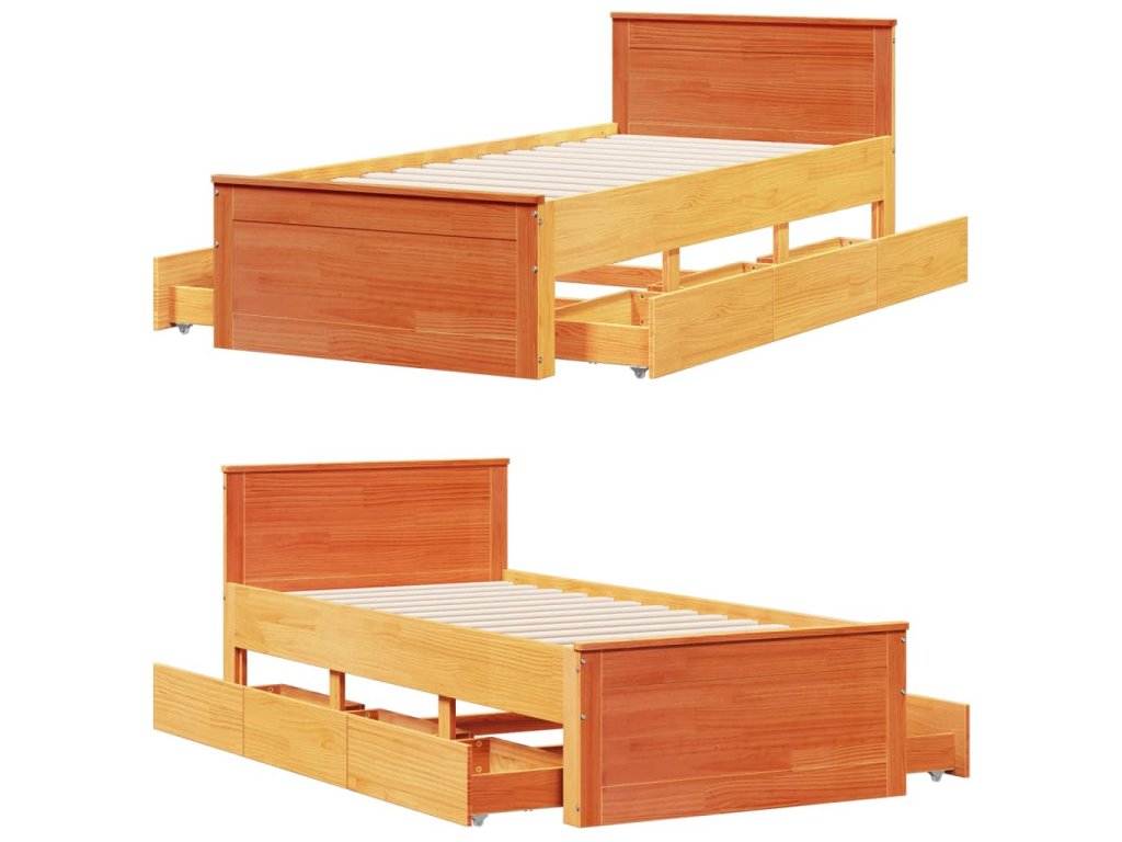 Postel bez matrace s čelem hnědá 90 x 200 cm masivní borovice 3308776