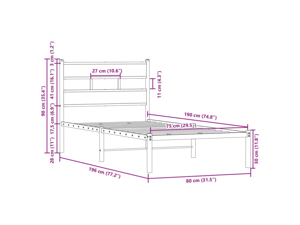 - Vhodné rozměry matrace: 75 x 190 cm (Š x D) (matrace není součástí balení)