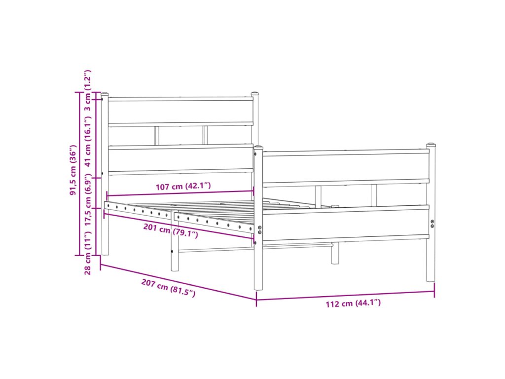 Postel bez matrace s hlavovým a nožním čelem 107 x 203 cm 4017165