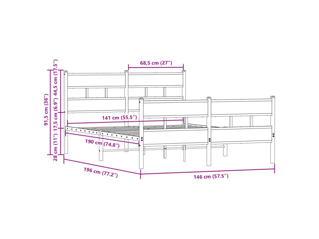 Postel bez matrace s hlavovým a nožním čelem 140 x 190 cm 4017169
