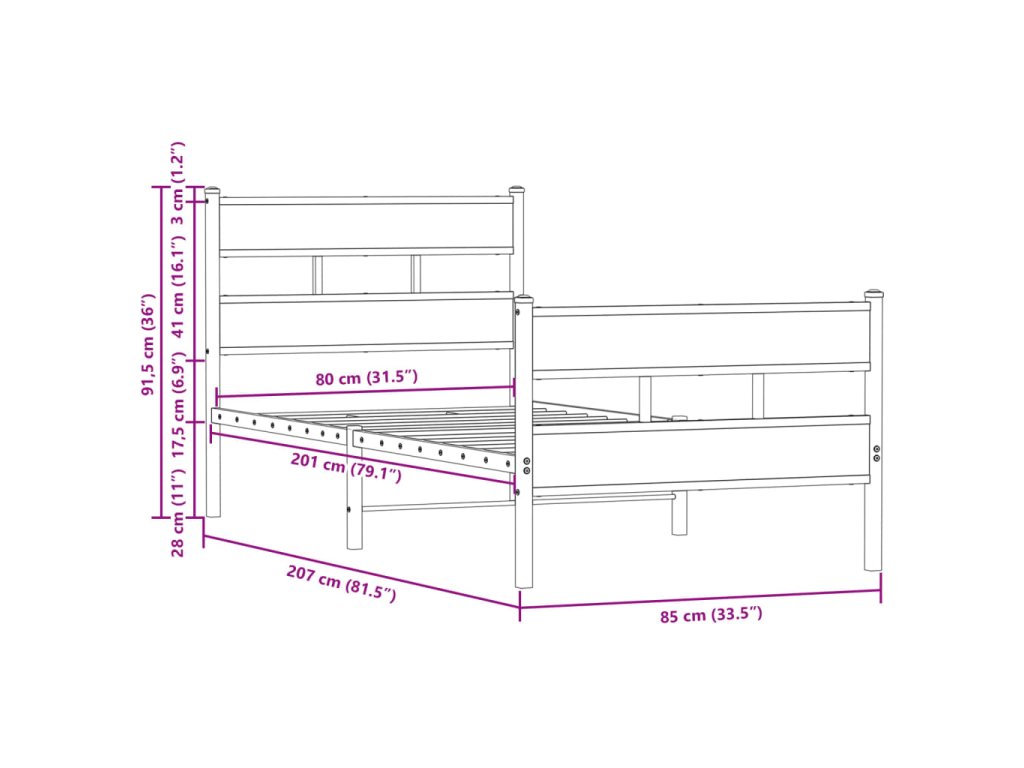 Postel bez matrace s hlavovým a nožním čelem 80 x 200 cm 4017160