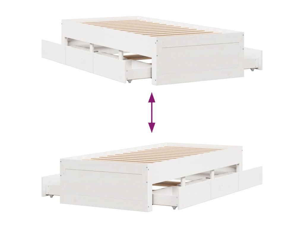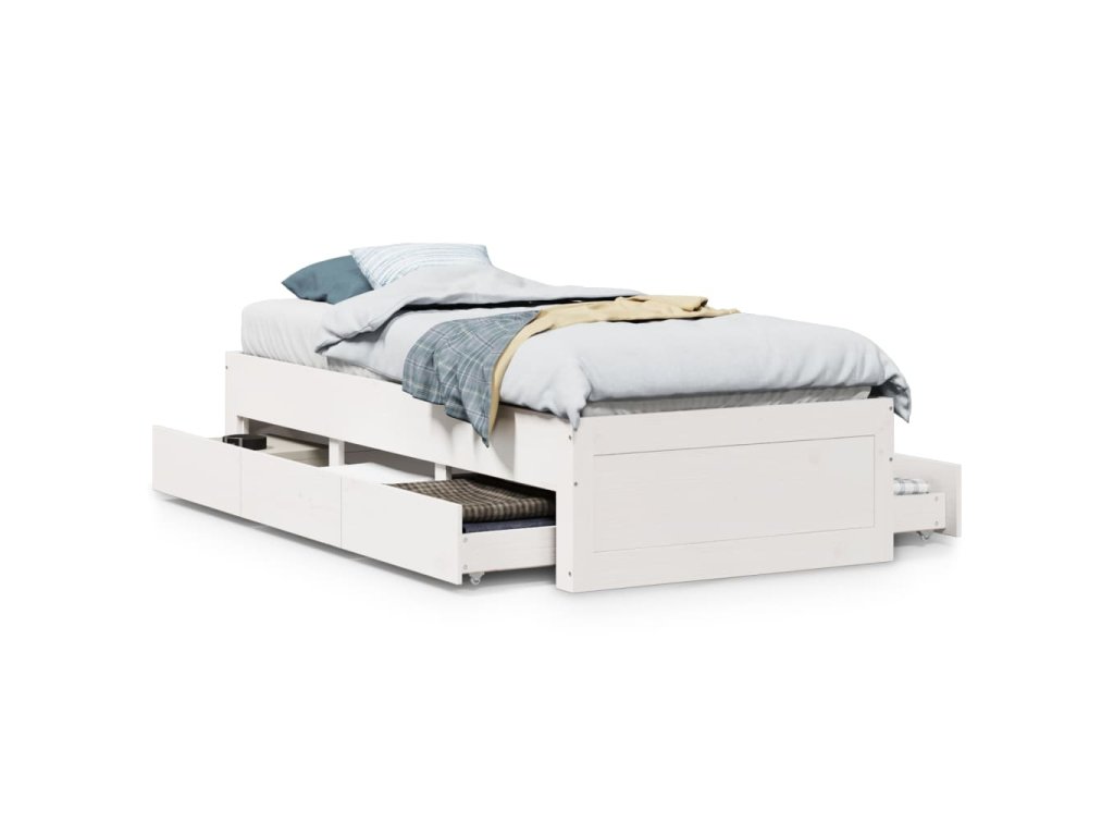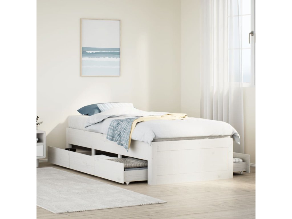 Postel bez matrace se zásuvkami bílá 90x190 cm masivní borovice 3308826