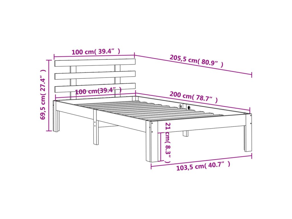 Postel bez matrace voskově hnědá 100 x 200 cm masivní borovice 844272