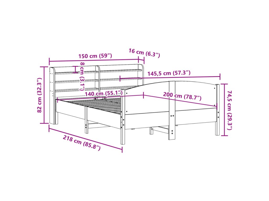 - Vhodné rozměry matrace: 140 x 200 cm (Š x D) (matrace není součástí balení)