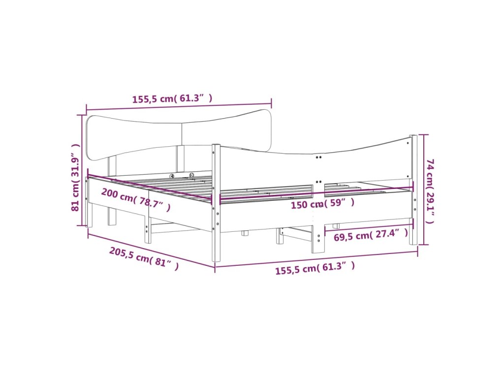 Postel bez matrace voskově hnědá 150 x 200 cm masivní borovice 3216380
