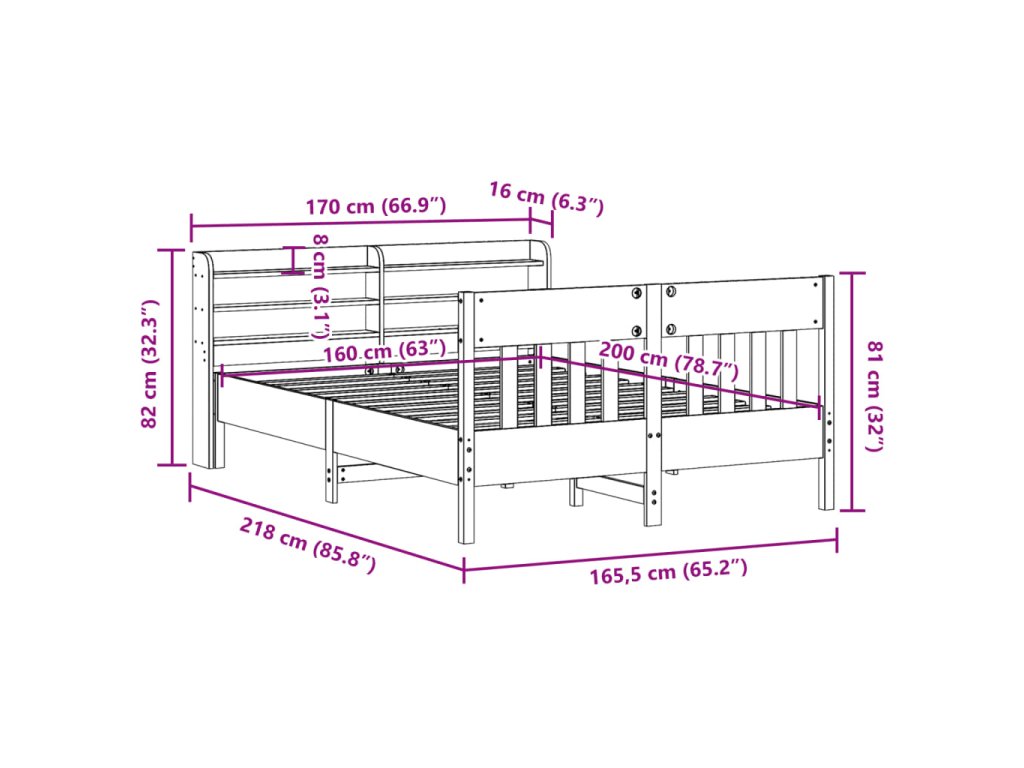 Postel bez matrace voskově hnědá 160 x 200 cm masivní borovice 3307001