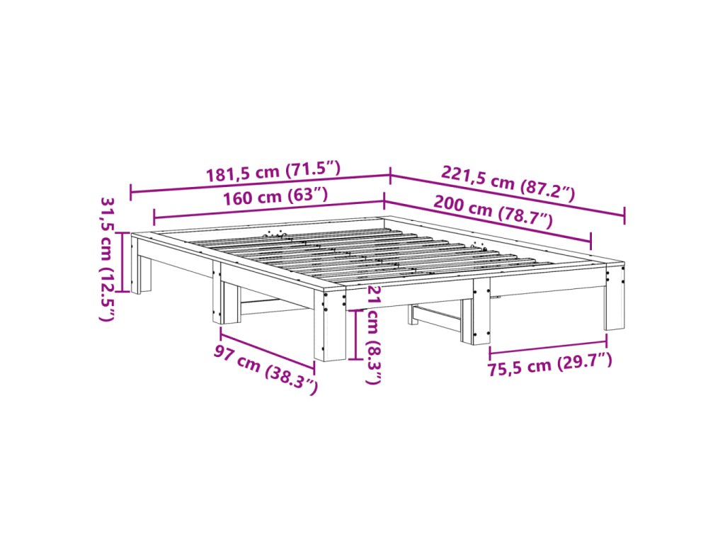 Postel bez matrace voskově hnědá 160 x 200 cm masivní borovice 3308734