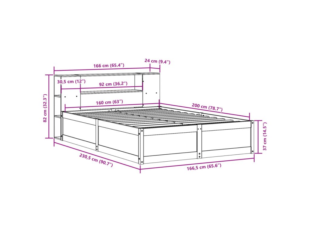 - Rozměry čela postele: 166 x 24 x 82 cm (D x Š x V)