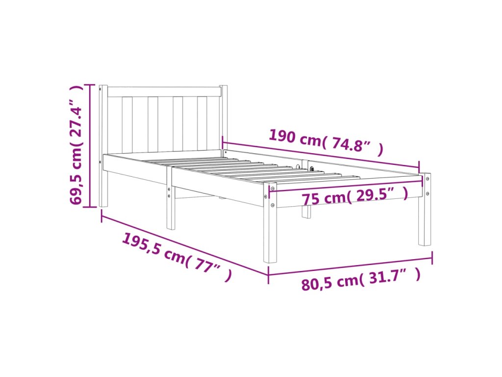 Postel bez matrace voskově hnědá 75 x 190 cm masivní borovice 844801