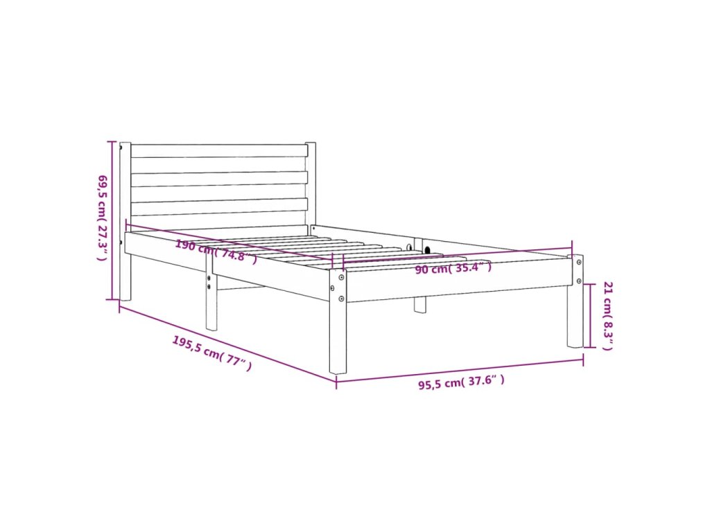 Postel bez matrace voskově hnědá 90 x 190 cm masivní borovice 844138