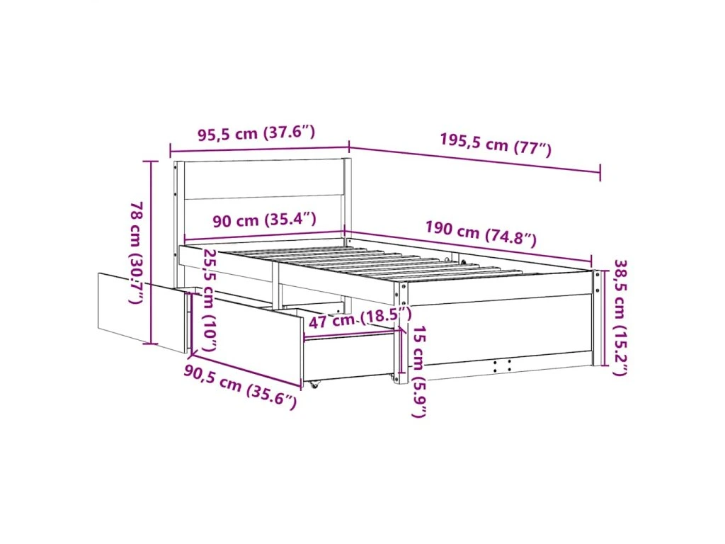 - Rozměry zásuvky pod postel: 90,5 x 47 x 25,5 cm (D x Š x V)