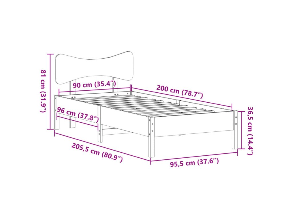 - Vhodné rozměry matrace: 90 x 200 cm (Š x D) (matrace není součástí balení)
