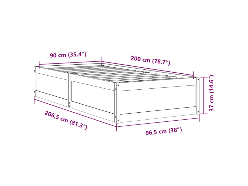 - Celkové rozměry: 206,5 x 96,5 x 37 cm (D x Š x V)