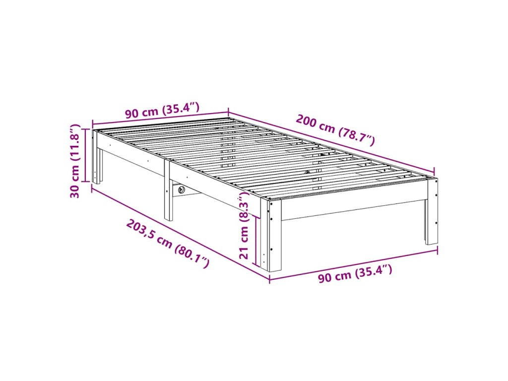 Postel bez matrace voskově hnědá 90 x 200 cm masivní borovice 859222