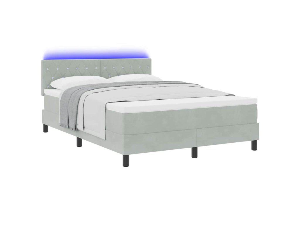 Tato LED pružinová postel je moderní kousek navržený pro ty, kdo mají rádi elegantní tvary a užitečnost. Nabízí čistý styl, takže se krásně vyjímá v každé ložnici a zajišťuje pohodlí i vizuální přitažlivost. LED osvětlení vytváří různorodou atmosféru podle vaší nálady, skvělé na relaxaci nebo romantické večery. S nastavitelnou hlavovou deskou a prodyšným sametem je to ideální volba pro každého, kdo chce sloučit komfort s moderním luxusem.