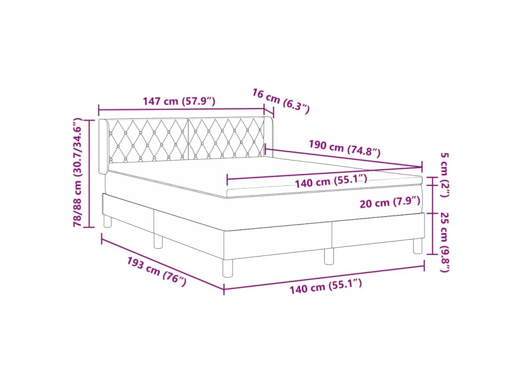 - Kompatibilní velikost matrace: Krátká dvojpostel (140 cm x 190 cm nebo 55" x 75")