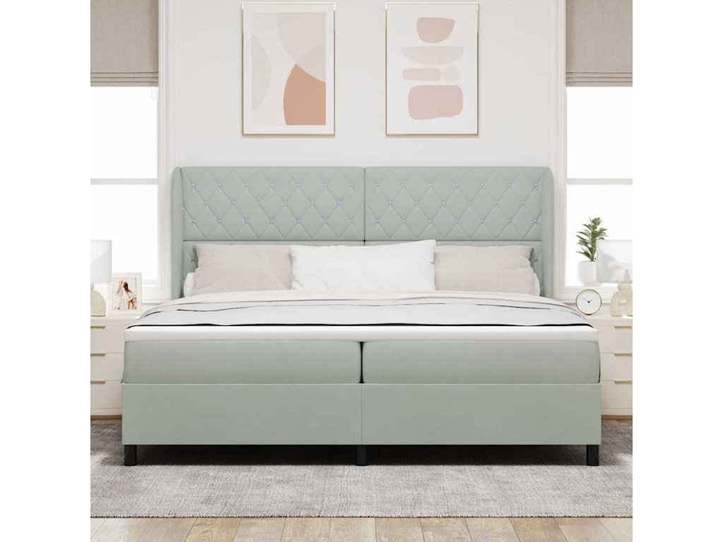 Postel s boxspringem s čelo Světle šedá 200 x 200 cm Polyester 3340892