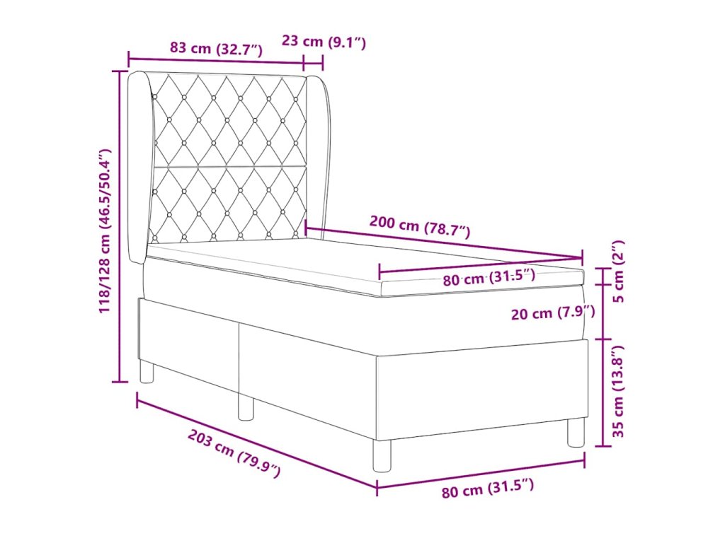 - Kompatibilní velikost matrace: Malé jednolůžko (80 cm x 200 cm nebo 31" x 79")