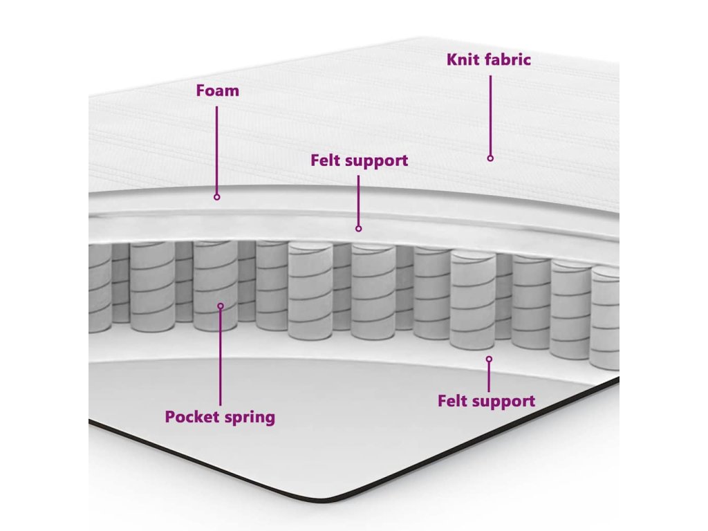 - Komfort matrace: Středně pevná matrace s kapsovými pružinami a pěnou zajišťuje skvělou rovnováhu mezi měkkostí a oporou. Je ideální pro každou spací polohu a poskytuje skvělou izolaci pohybu a úlevu od tlaku.
