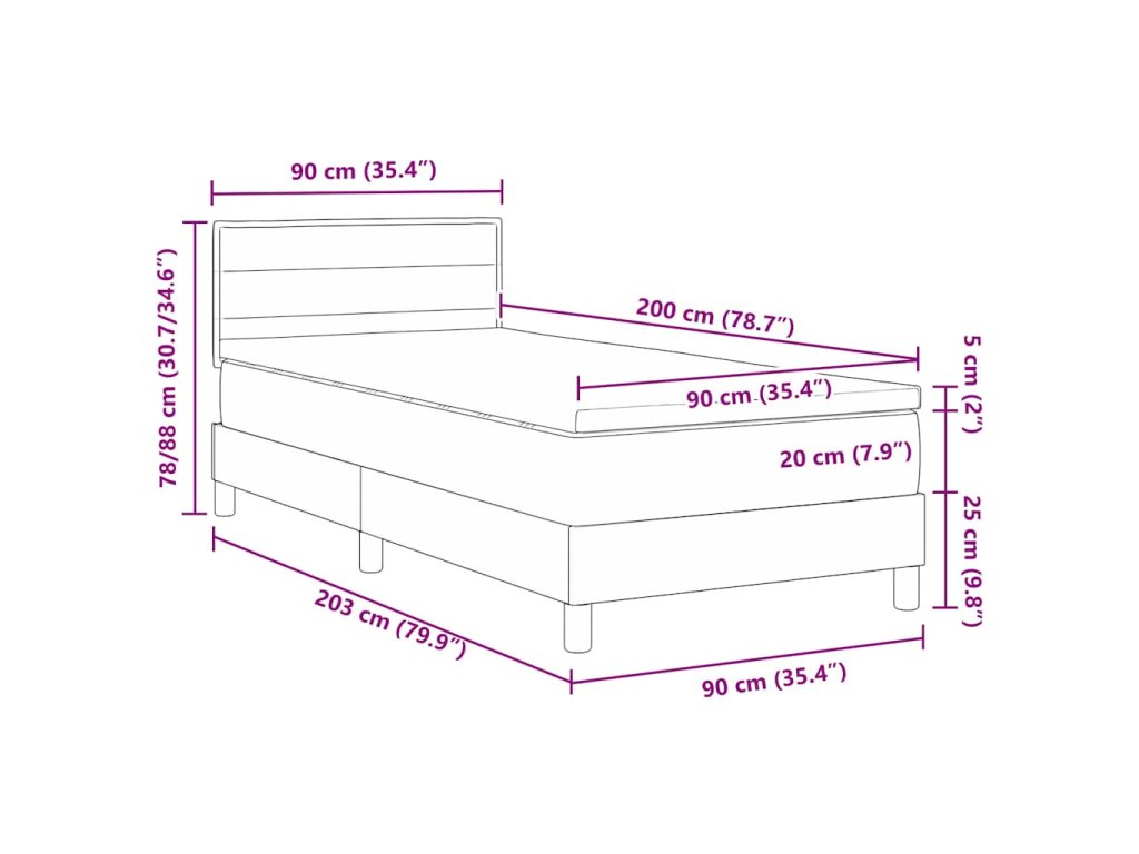 - Velikost matrace: Jednolůžko (90 cm x 200 cm nebo 35" x 79")