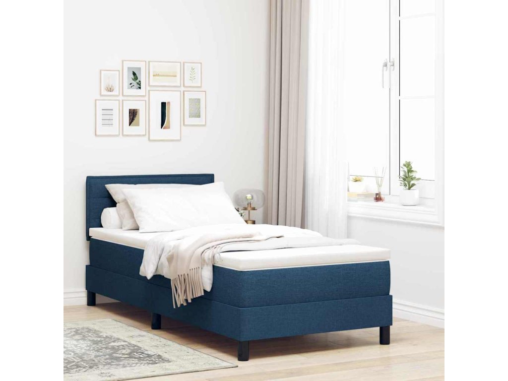 Postel s boxspringem s matrací s čelo Modrá 100 x 200 cm textil 3338593