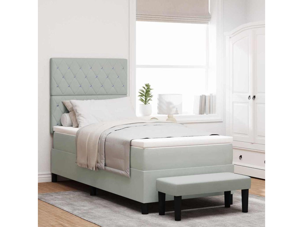 Postel s boxspringem s matrací Světle šedá 100 x 200 cm samet 3344426