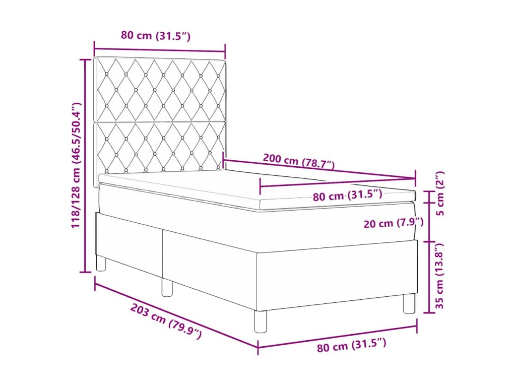 - Velikost matrace: Malé jednolůžko (80 cm x 200 cm nebo 31" x 79")