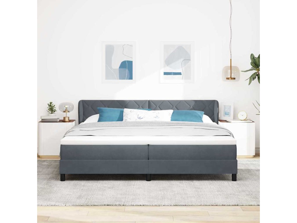 Postel s boxspringem s matrací Tmavě šedá 200 x 200 cm samet 3340461