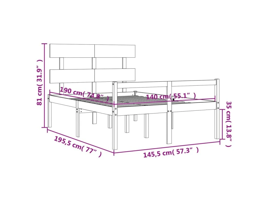 Postel s čelem pro seniory 140x190 cm masivní dřevo 3195331