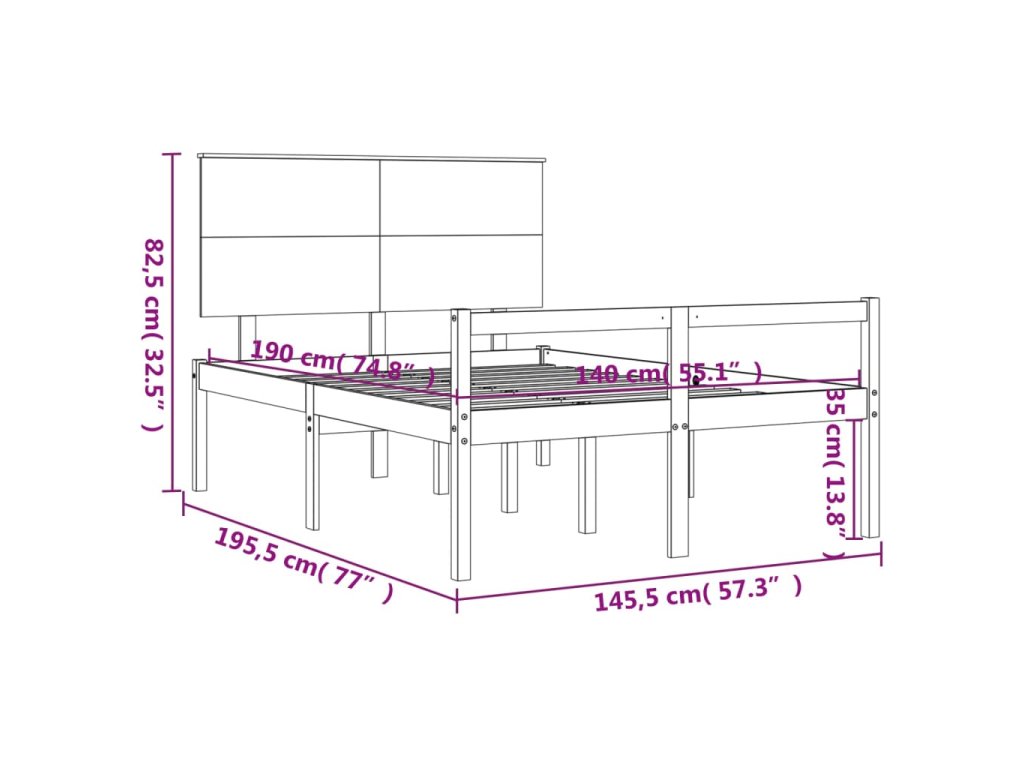 Postel s čelem pro seniory 140x190 cm masivní dřevo 3195461