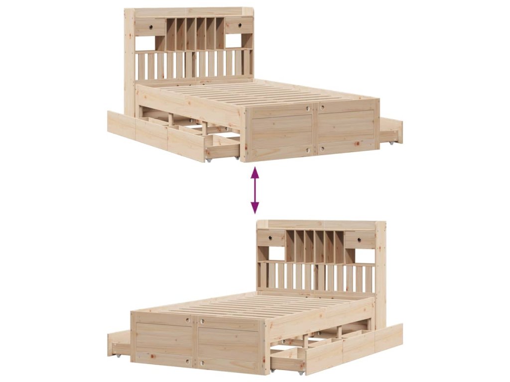 Postel s knihovnou bez matrace 135 x 190 cm masivní borovice 3308975
