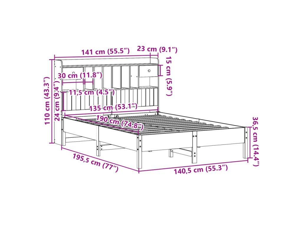 Postel s knihovnou bez matrace 135 x 190 cm masivní borovice 3322924