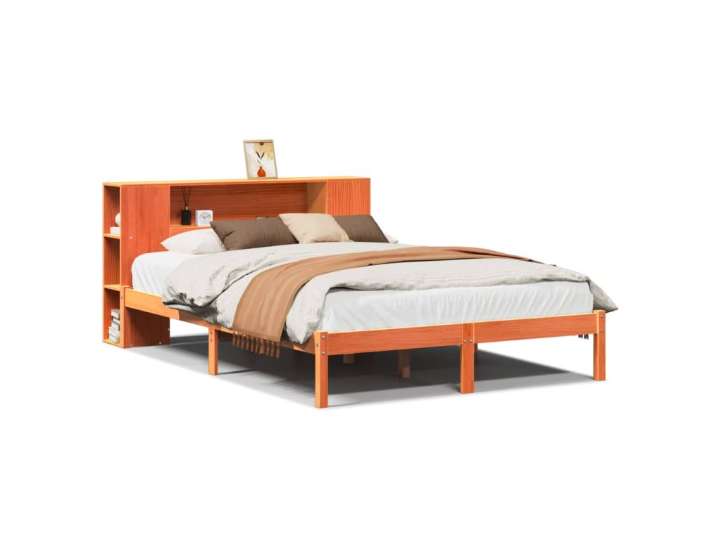 Postel s knihovnou bez matrace 140 x 190 cm masivní borovice 3321552