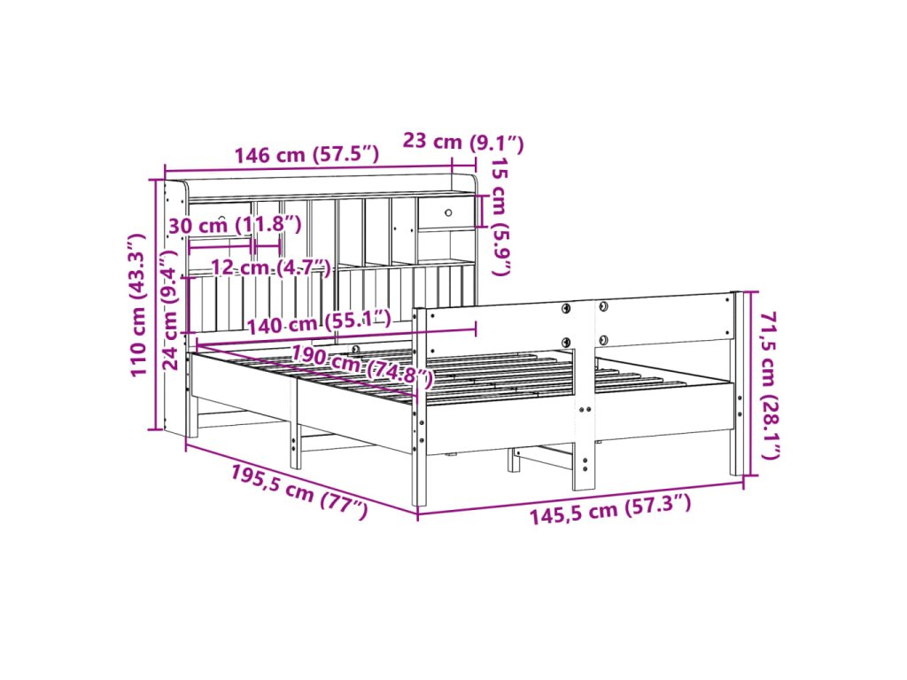 Postel s knihovnou bez matrace 140 x 190 cm masivní borovice 3323038