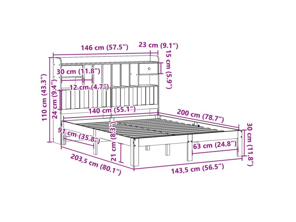 Postel s knihovnou bez matrace 140 x 200 cm masivní borovice 3322601