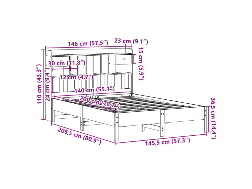Postel s knihovnou bez matrace 140 x 200 cm masivní borovice 3322911