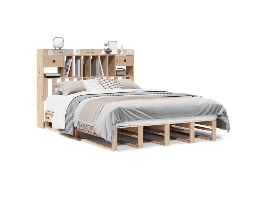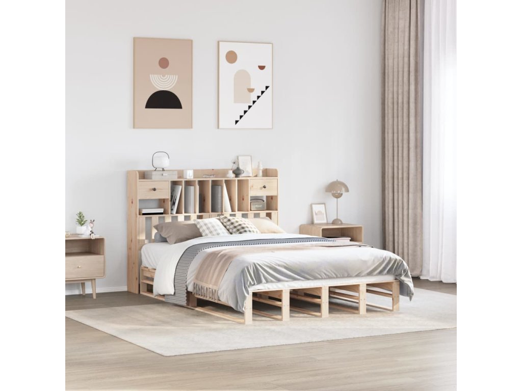 Postel s knihovnou bez matrace 140 x 200 cm masivní borovice 3323959