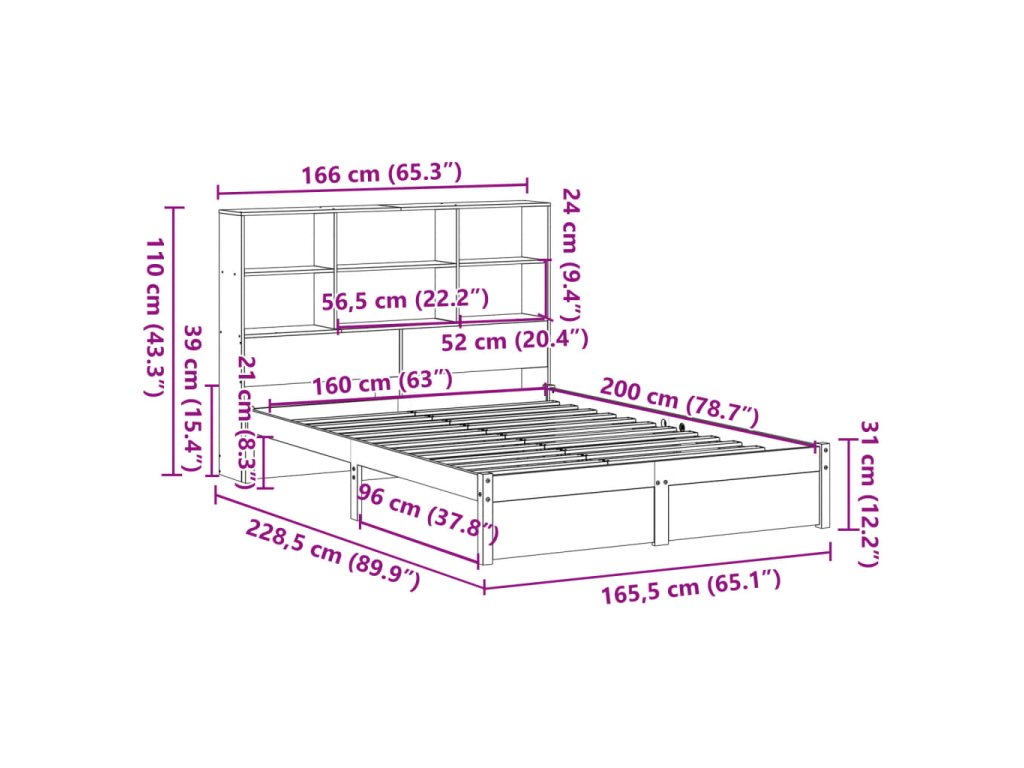 Postel s knihovnou bez matrace 160 x 200 cm masivní borovice 3322397