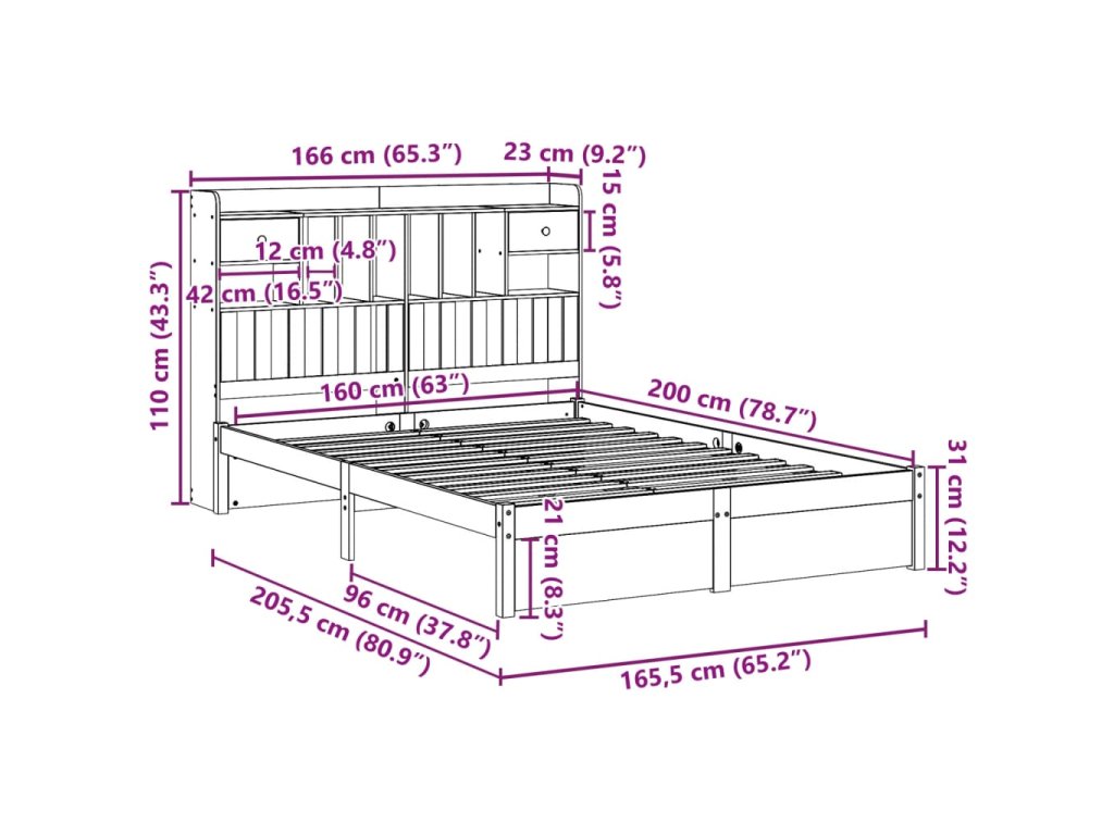 Postel s knihovnou bez matrace 160 x 200 cm masivní borovice 3322423