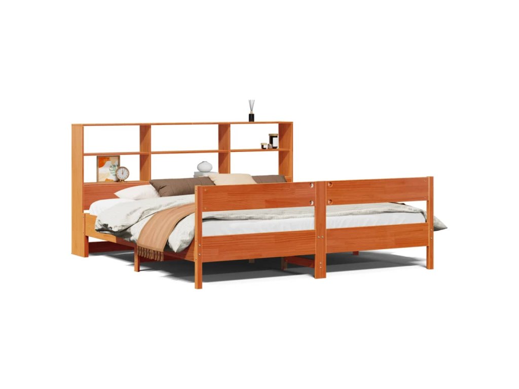 Postel s knihovnou bez matrace 200 x 200 cm masivní borovice 3322977