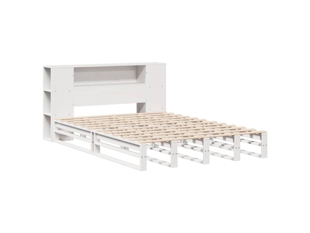 Postel s knihovnou bez matrace bílá 140 x 190 cm masivní dřevo 3323897