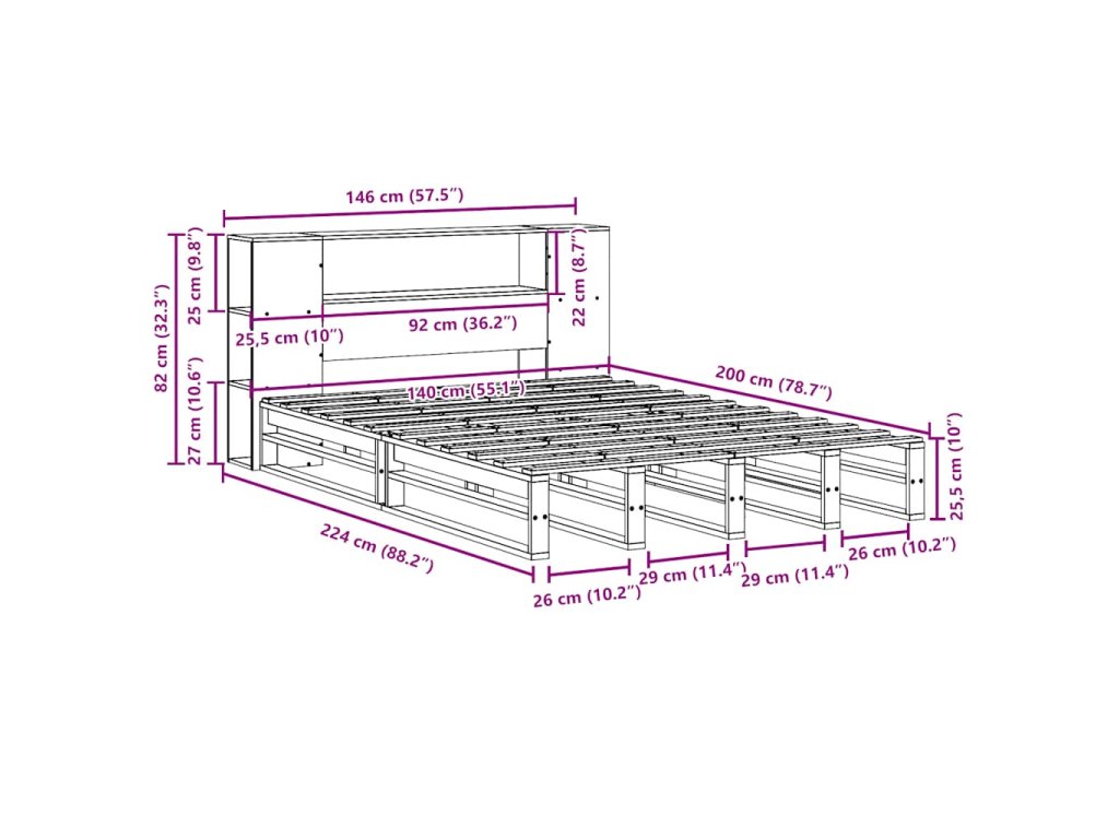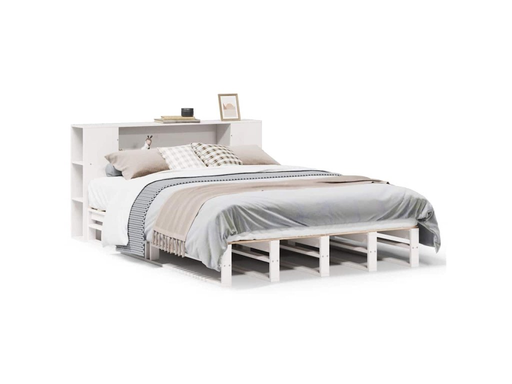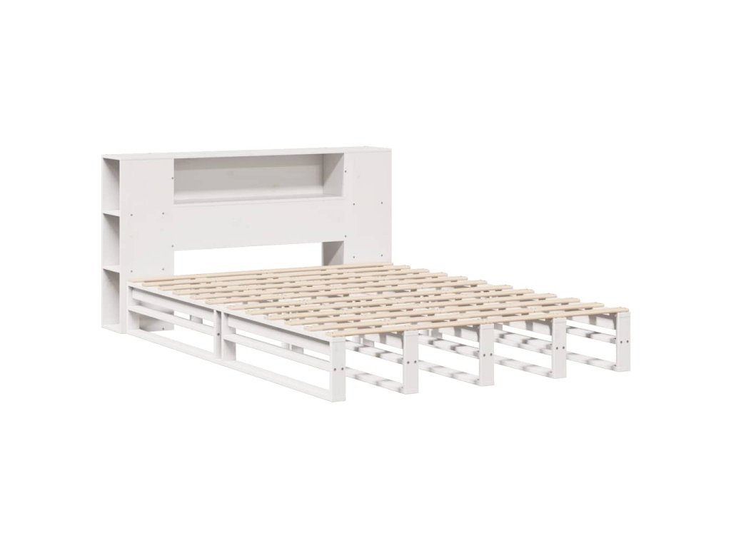 Postel s knihovnou bez matrace bílá 140 x 200 cm masivní dřevo 3323876