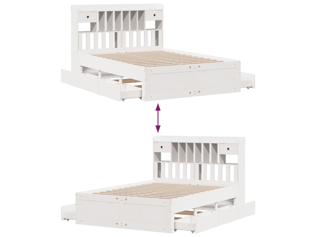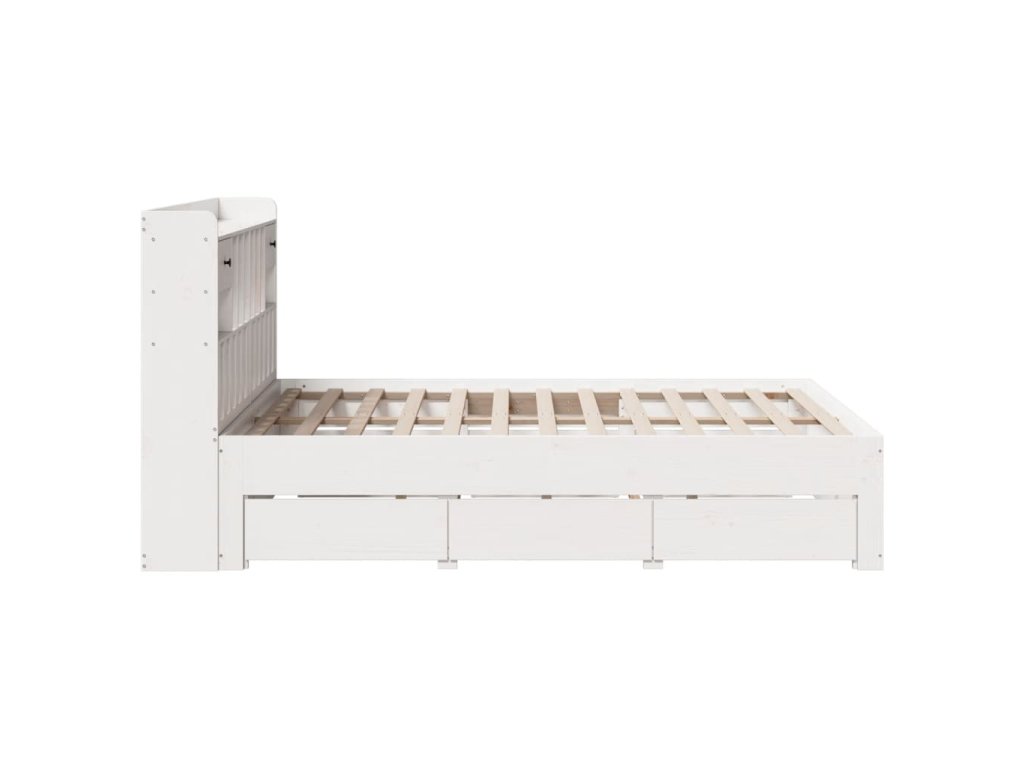 Postel s knihovnou bez matrace bílá 150x200 cm masivní borovice 3308958