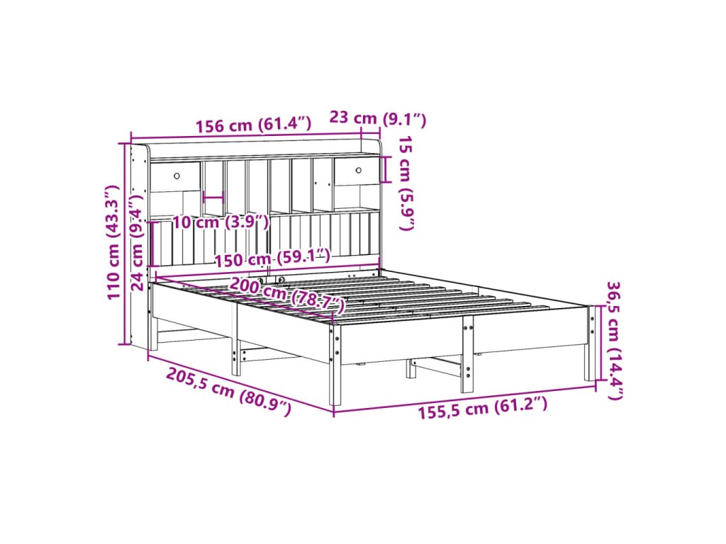 Postel s knihovnou bez matrace bílá 150x200 cm masivní borovice 3322907