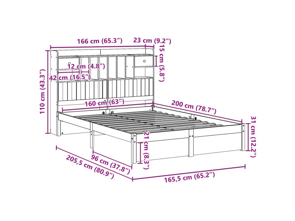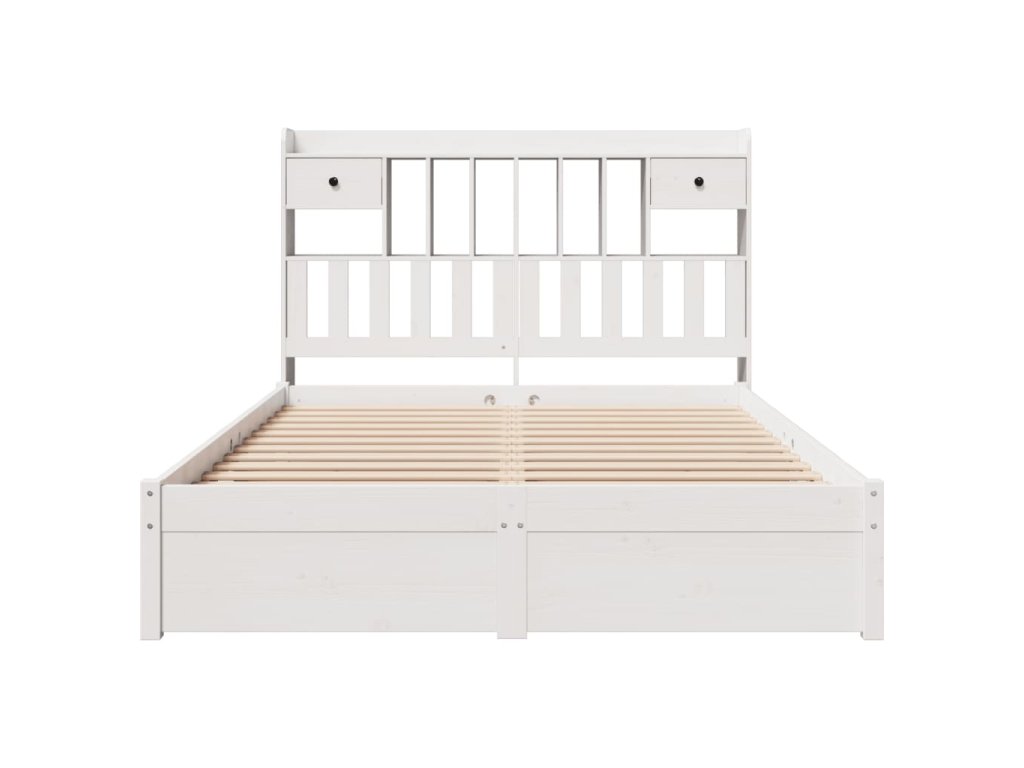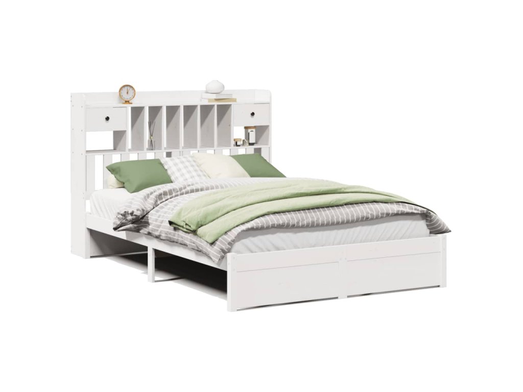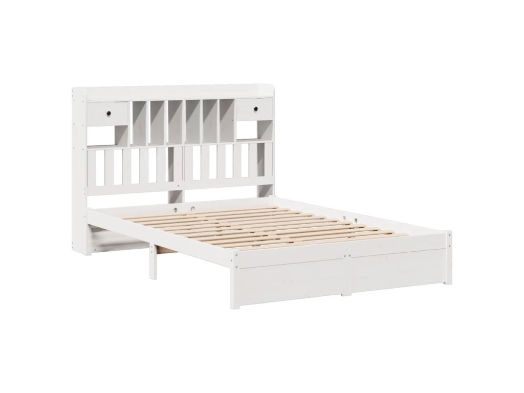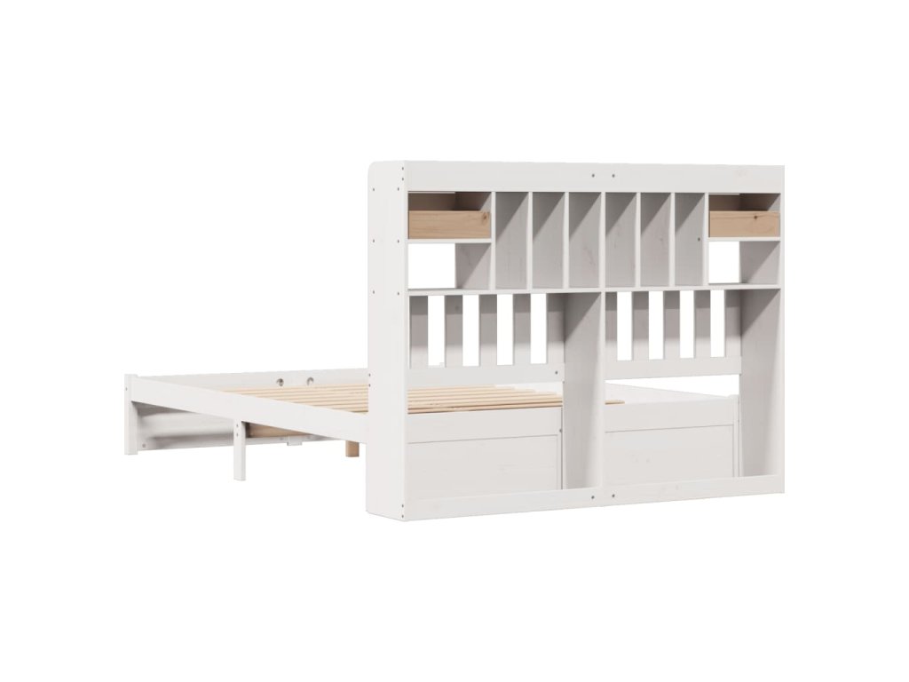 Postel s knihovnou bez matrace bílá 160x200 cm masivní borovice 3322424