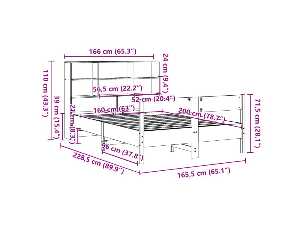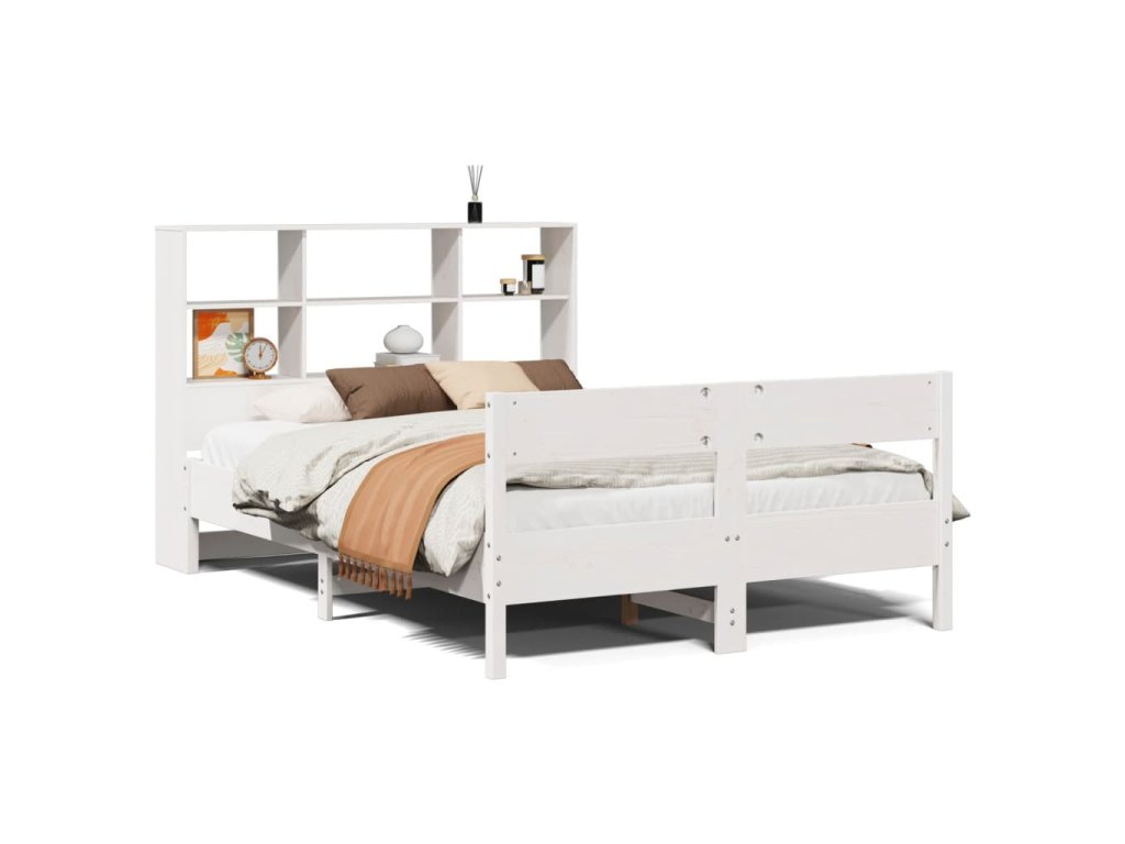 Postel s knihovnou bez matrace bílá 160x200 cm masivní borovice 3322982