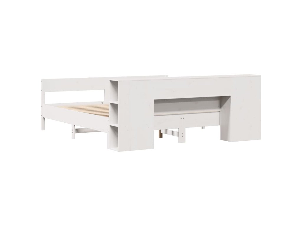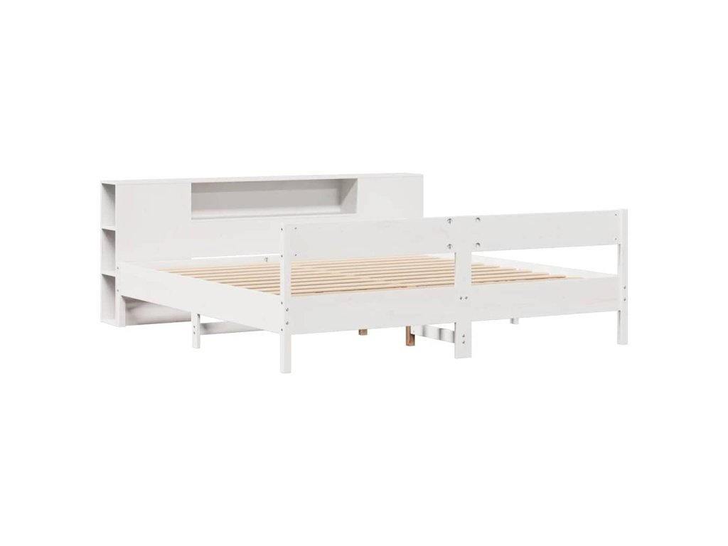Postel s knihovnou bez matrace bílá 200x200 cm masivní borovice 3322937