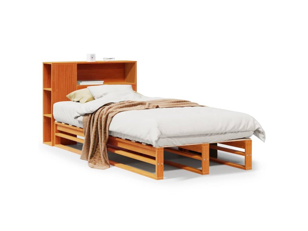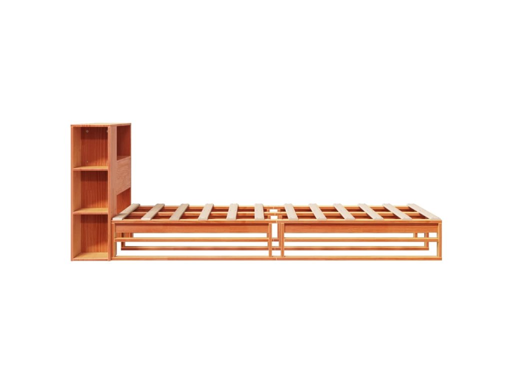Postel s knihovnou bez matrace hnědá 100 x 200 cm masivní dřevo 3323904