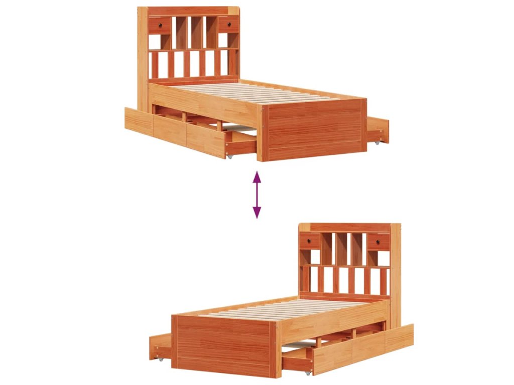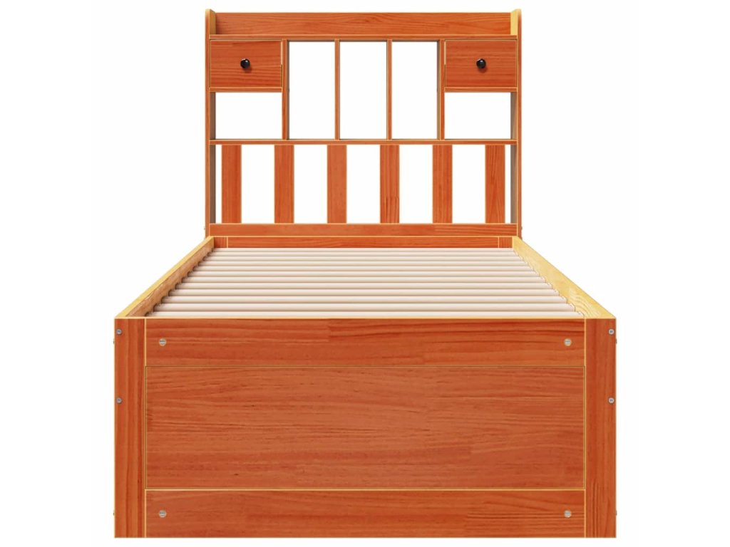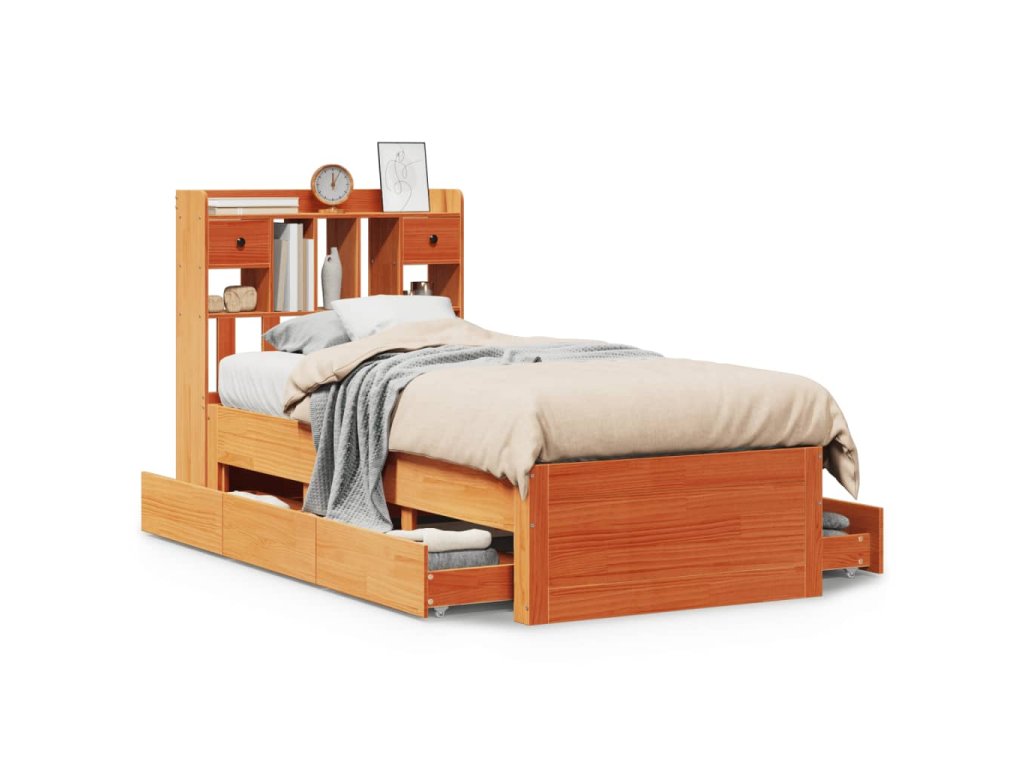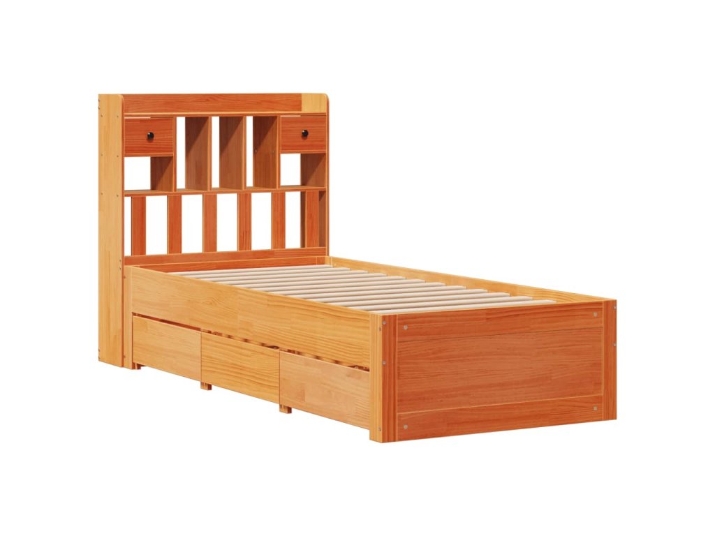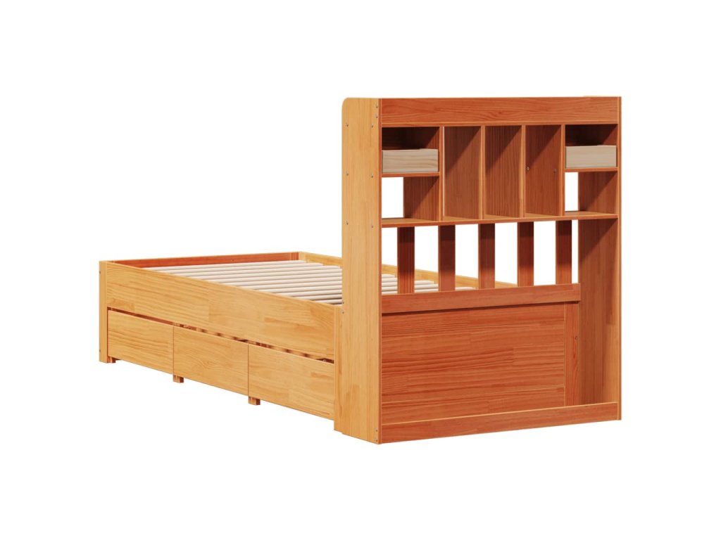 Postel s knihovnou bez matrace hnědá 100x200 cm masiv borovice 3308968