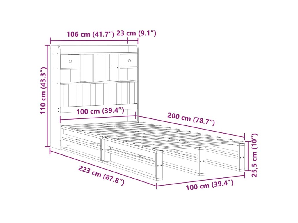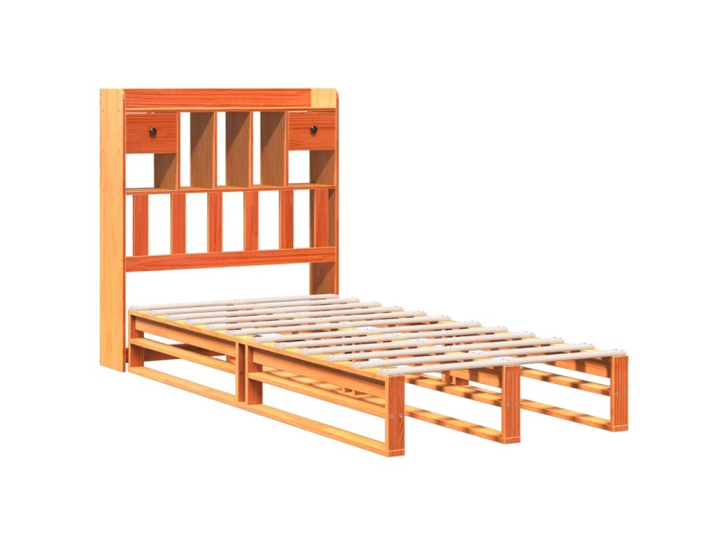 Postel s knihovnou bez matrace hnědá 100x200 cm masiv borovice 3323955